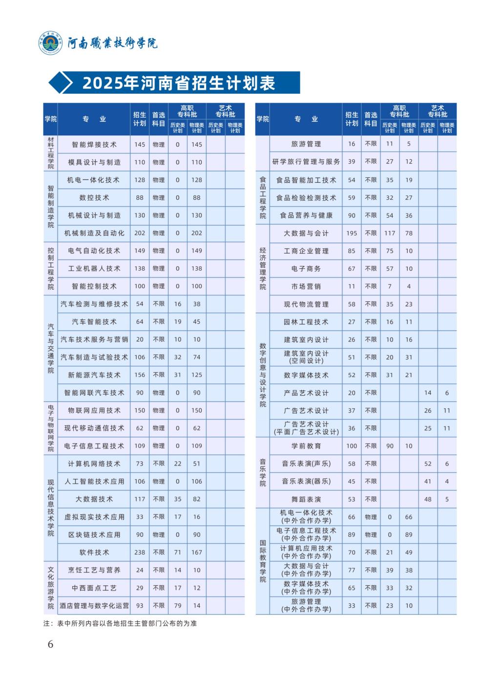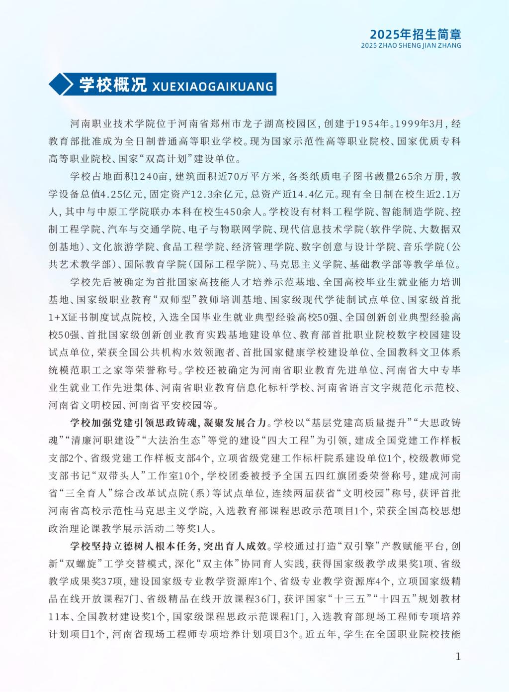 河南职业技术学院2025年普通高招招生简章
