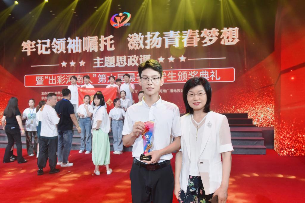 6月25日,由省委宣传部、省委教育工委、省教育厅、河南日报社、河南广播电视台、共青团河南省委主办的“牢记领袖嘱托 激扬青春梦想”主题思政课暨“出彩河南人”第六届最美大学生颁奖典礼拉开帷幕,我校孟荣恩荣获“出彩河南人”第六届最美大学生荣誉称号,这也是我校学生首次获得此项荣誉。