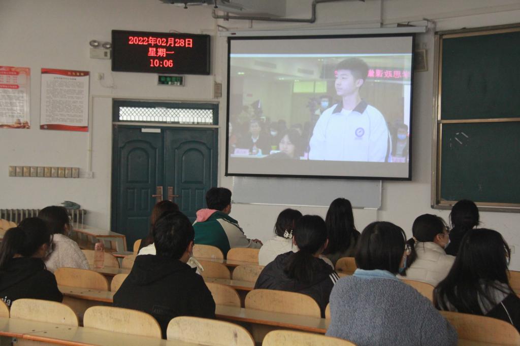 2月28日上午九点,校团委组织学生会、青年志愿者协会、社团工作部、国旗护卫队等200名主要学生代表在1101教室,观看了“2022年春季开学思政第一课”。