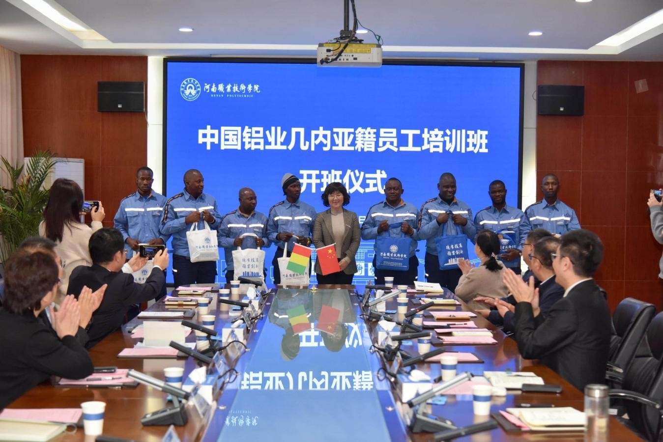 教师代表杨莉老师承诺将全力以赴投入教学,为学员们提供优质的教学服务。几内亚学员阿拉善·西塞代表全体学员表达了对中国铝业和河南职业技术学院的感激之情以及对未来在中国河南学习生活的美好憧憬。