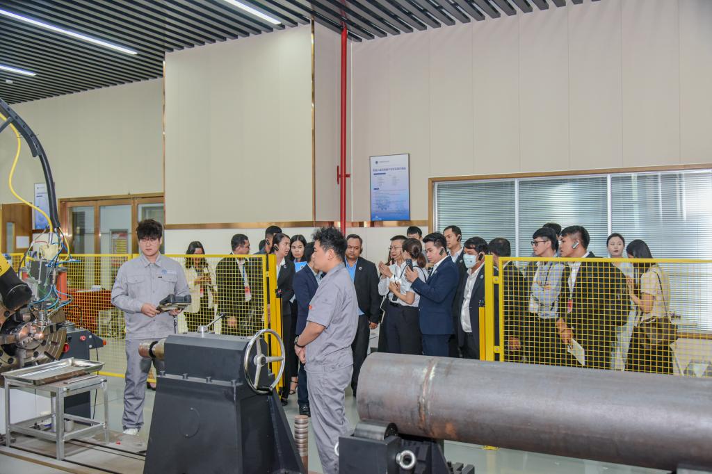 会后,研修班一行实地考察了学校现代技术综合实训中心,重点参观了焊接技术工匠工坊、格力智能制造学习工厂、新能源汽车实训室、木工创意工坊等校内实训场地和比亚迪郑州工厂等校外产教融合基地,详细了解了学校的教学设施、实训条件和师资力量,对学校的教学质量和办学水平给予了高度评价。(撰稿:刘越;审稿:王伟)