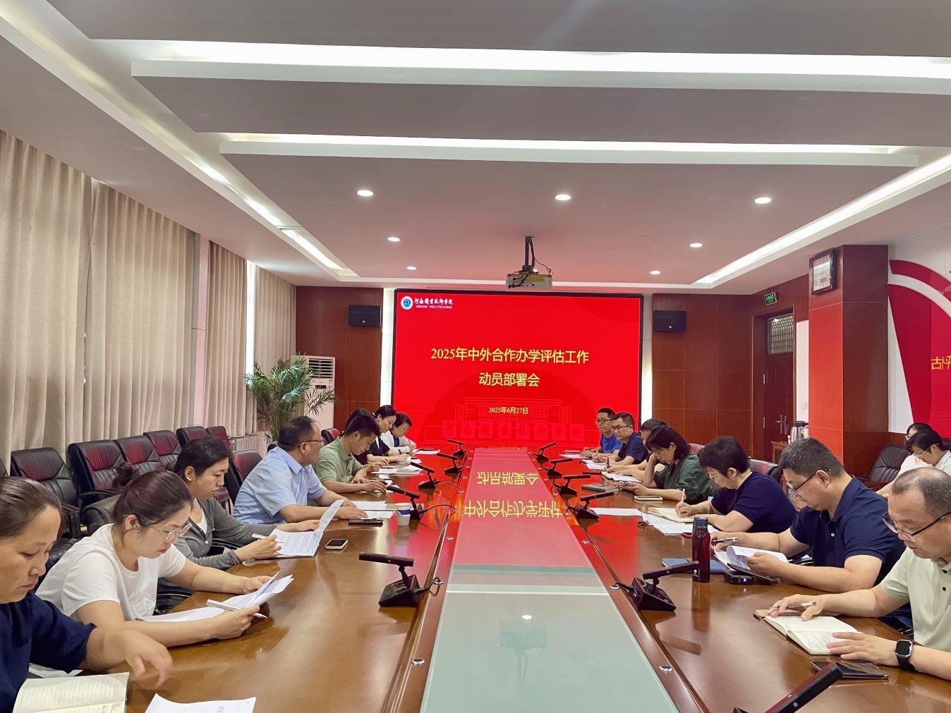 6月27日上午,河南职院在勤业楼332会议室召开2025年中外合作办学评估工作动员部署会。党委委员、副校长鲁冬出席会议并作动员讲话,国际合作交流处、财务处、审计处、智能制造学院、现代信息技术学院、电子与物联网学院、国际教育学院等相关二级学院的主要负责同志参会。