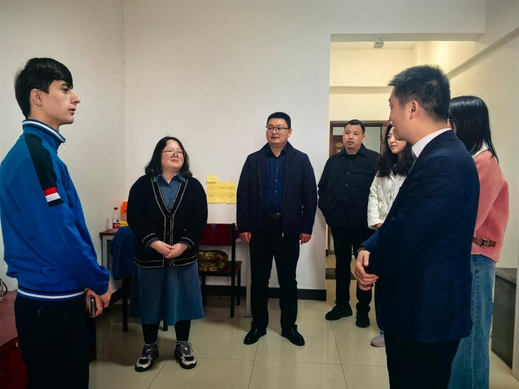 国际教育学院院长解鹏程与留学生们亲切交谈,关心住宿条件、饮食、出行等问题,并鼓励他们要努力学习中文和专业课程,勇于参与学校的各项赛事,增进跨文化理解和自我成长。留学生们表示很享受与中国师生的交流和学习,会更加珍惜在校时光。