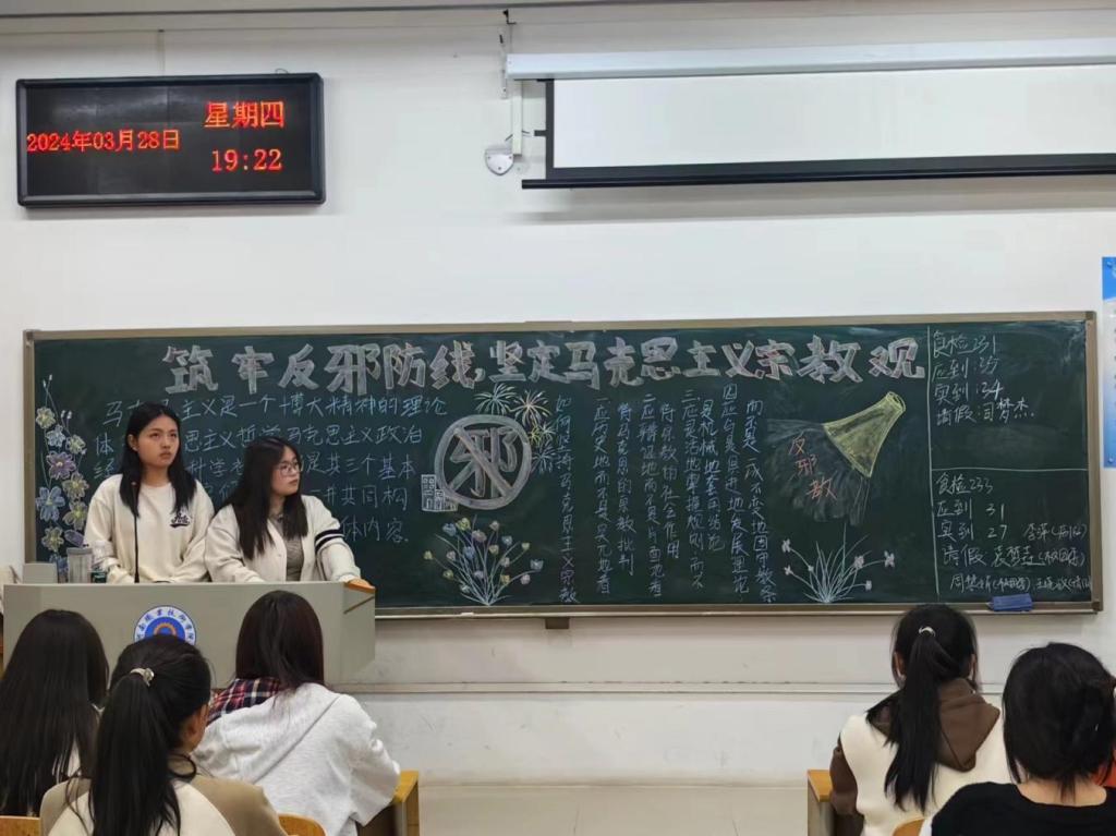 为深入贯彻落实党的宗教工作方针政策,帮助学生坚定马克思主义信仰,3月25日—4月12日,我校以各班团支部为单位开展了“筑牢反邪防线,坚定马克思主义宗教观”主题团课。