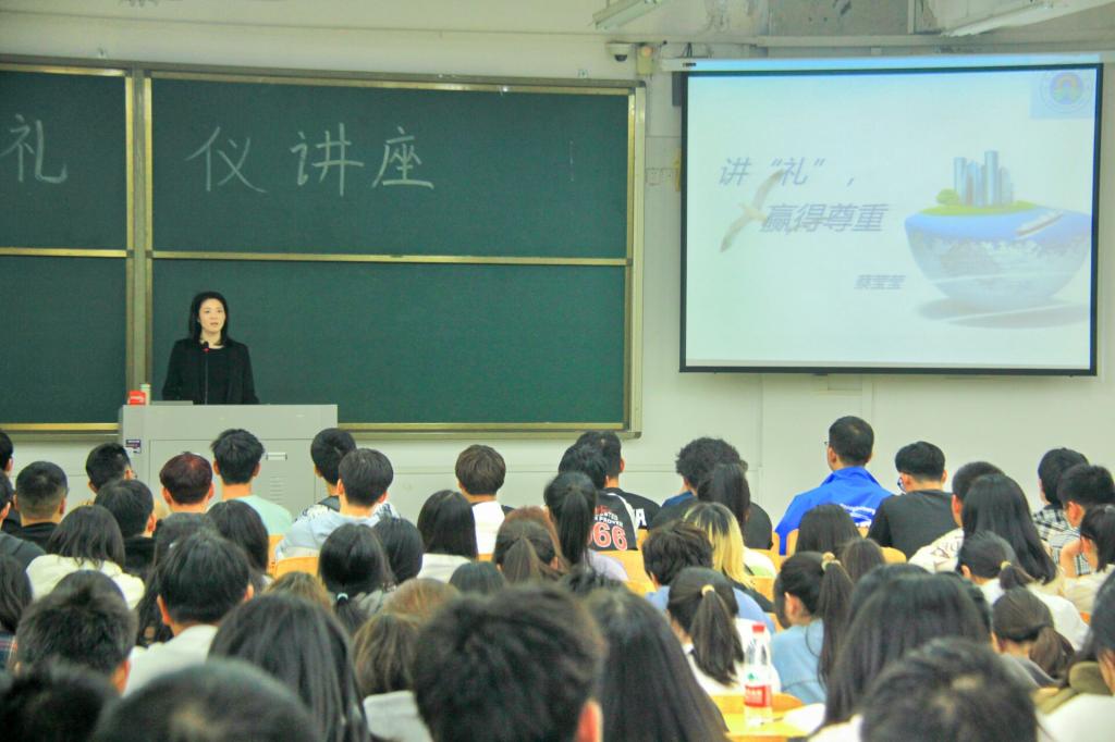 为加强校园文明建设,增强学生文明意识,10月26日下午,校团委在明理楼1301教室开展题为“讲理礼-赢得尊重”知识讲座,本次讲座由文旅学院蔡莹莹副教授主讲,2023级全体学生骨干共计200余人参加讲座。