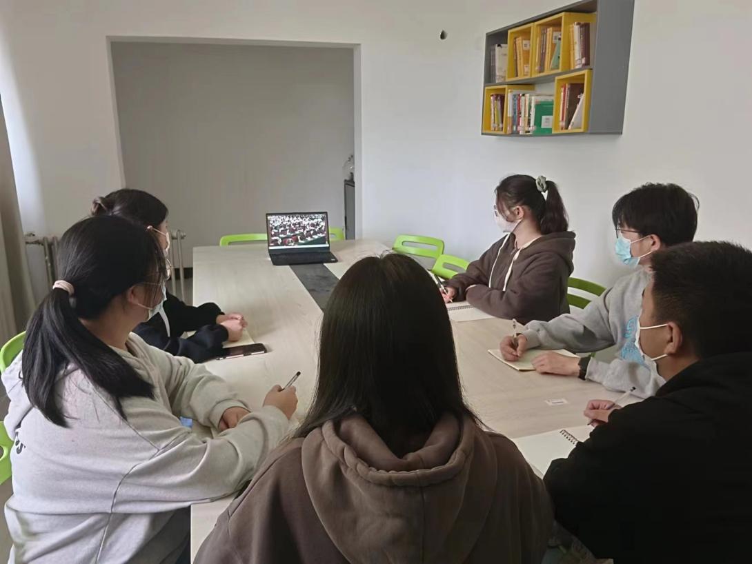 大会直播结束后,团委书记房静第一时间组织我校优秀团员青年代表齐聚一堂,共同学习领会习近平总书记在大会上的重要讲话精神。